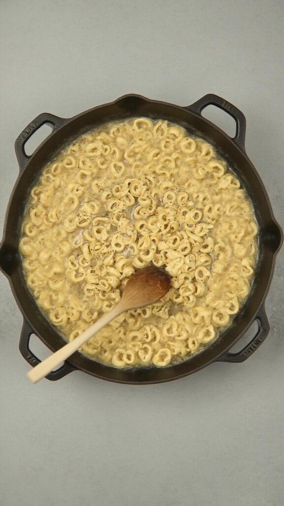 3. Add the broth-cornstarch mixture to the skillet and bring it to a boil, simmering until it thickens, about 2 minutes, then toss in the cooked tortellini to coat.