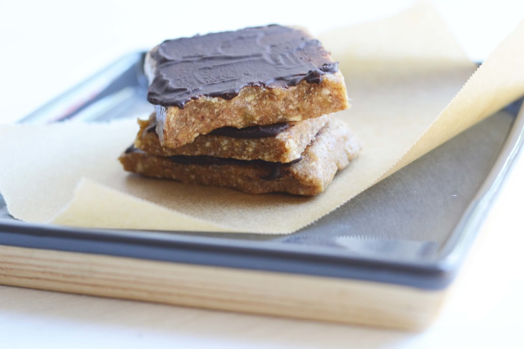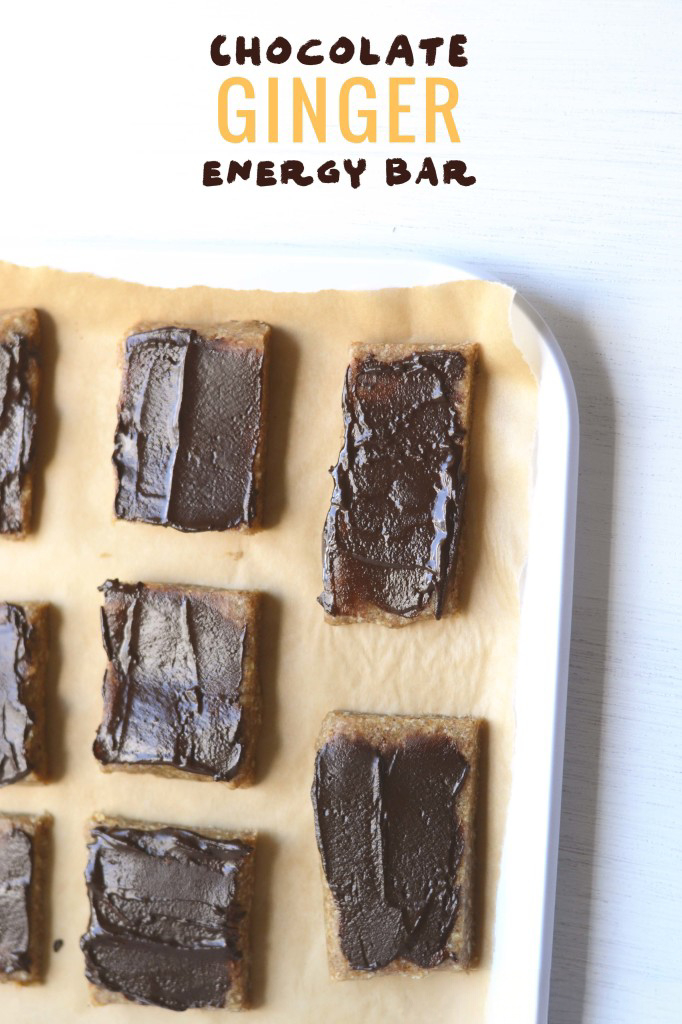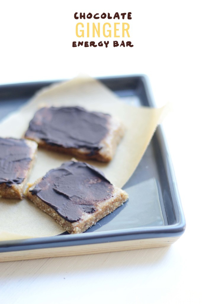 These no-bake ginger energy bars layered with semi-sweet chocolate are the perfect spicy sweet treat that will get you through that 3pm slump.