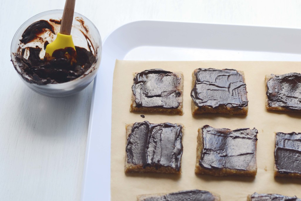 9. Use a knife or a small spatula to spread chocolate over each slice