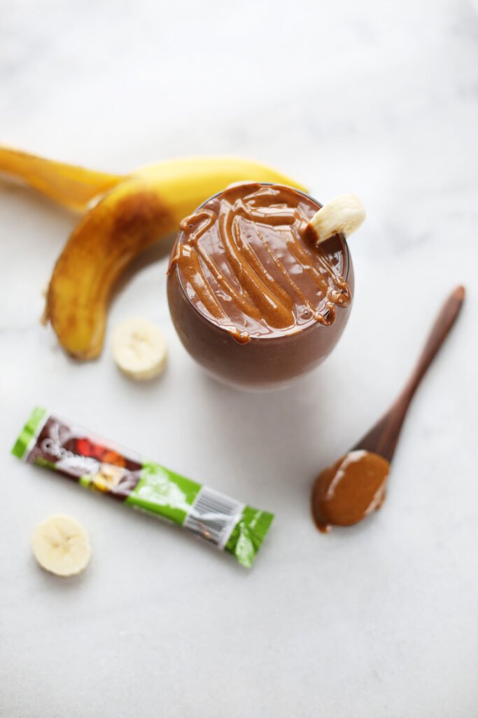 Today I whipped up a simple, easy to make, classic smoothie combo to show you how easy it is to incorporate CocoaVia into your routine. Hey, if a chocolate, pb, banana smoothie is gonna make my heart happy in the long run, then you can twist my arm.