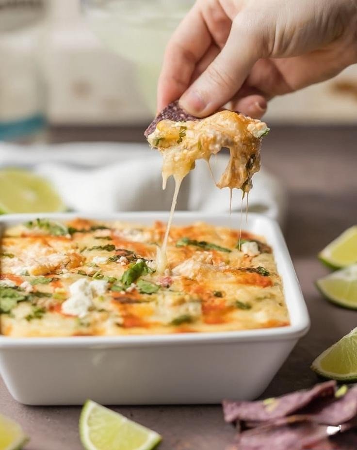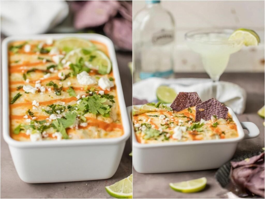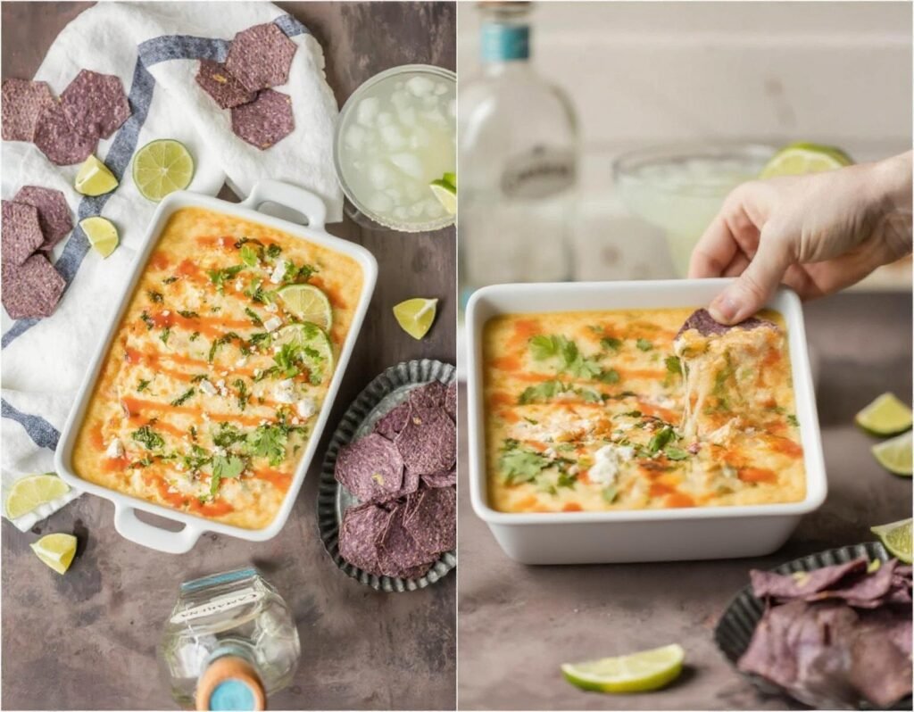 My Healthy Mexican Street Corn is one of my favorite recipe on the site, but you guys KNOW I love hot and cheesy dips above all else. Cinco de Mayo is a holiday to SPLURGE and not worry about calories, so I thought, why not combine the two? Make a hot and cheesy version of my favorite cold quick dip?! The result is perfection, if I do say so myself!
