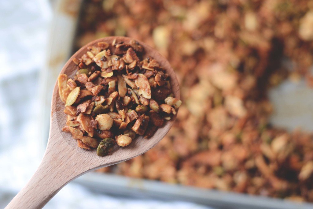 This grain-free granola packs all the flavor and crunch you crave without any refined sugar or grains. Add this granola to your favorite yogurt, enjoy it on top of a smoothie bowl, eat it with milk or let’s be real, nibble on it straight from the container.