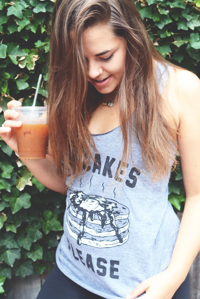 I’m bringing this recipe for happiness to you as a part of mini series with the lovely folks at Pyknic, an apparel company that sells fantastic foodie t-shirts. Whenever I wear my “Pancakes Please” tank, which incidentally is quite a lot, I always think of Amanda Bynes saying “Amanda Pleaase.”