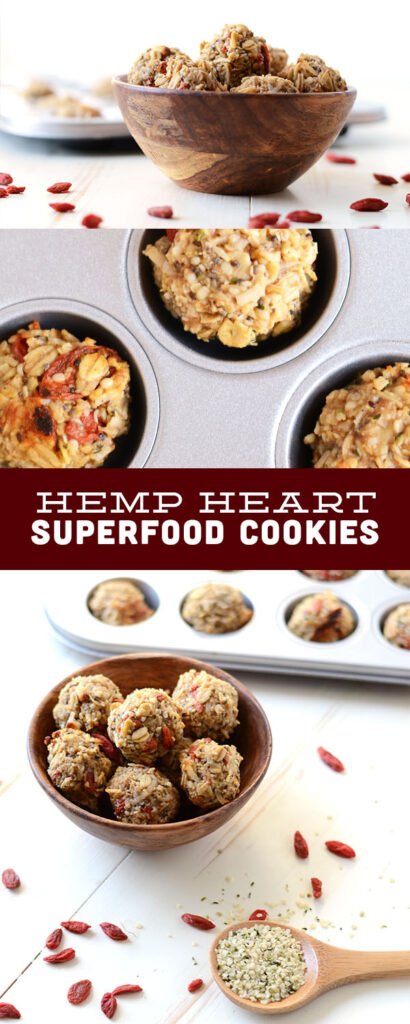 I think I might have found my new favorite way to eat hemp hearts. Yup, these superfood cookies. I honestly was not prepared for these to turn out as good as they did. I thought they’d be more “earthy-crunchy,” but instead they taste like a glorious hybrid between an oatmeal cookie and a coconut macaroon. They’re also delicious proof that nutrient-dense foods can taste great. I’d take one of these ‘lil guys over a processed snack any day.