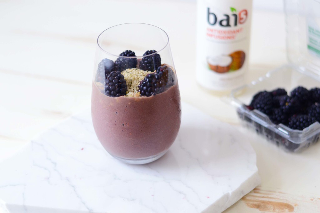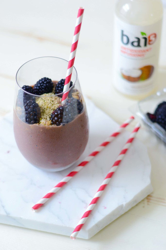 I love my morning smoothie ritual. I’m usually making my french press full of coffee at the same time, so the smell of coffee drifts through the air as I blend. I always start with a ripe frozen banana and add whatever frozen fruit I have on hand then throw in greens, my Vega protein powder (not paid btw, I genuinely love that stuff) a little cinnamon and vanilla extract then blend it up with Bai, coconut milk or almond milk. Oh, then the toppings. I love adding hemp and sunflower seeds, a tablespoon of nut butter and the fresh berries I have on hand, but let’s be real it’s almost always blackberries (because oMg yUm).