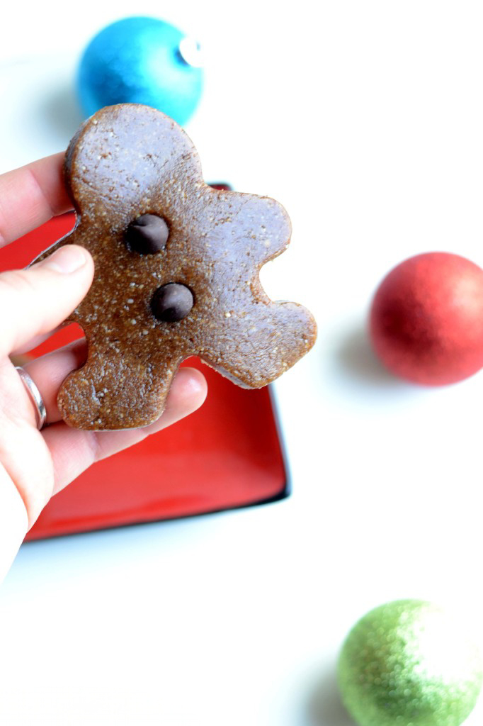 First cookie recipe you don’t even have to turn on the oven for. Huzzah! These tasty gingerdudes are a hybrid of my favorite cookie and a larabar. Kinda like that idea of having your cake and eating it too, but you know, with gingerbread. Also, fair warning: if you don’t like gingerbread things you might want to stay away from the blog until, like, January.