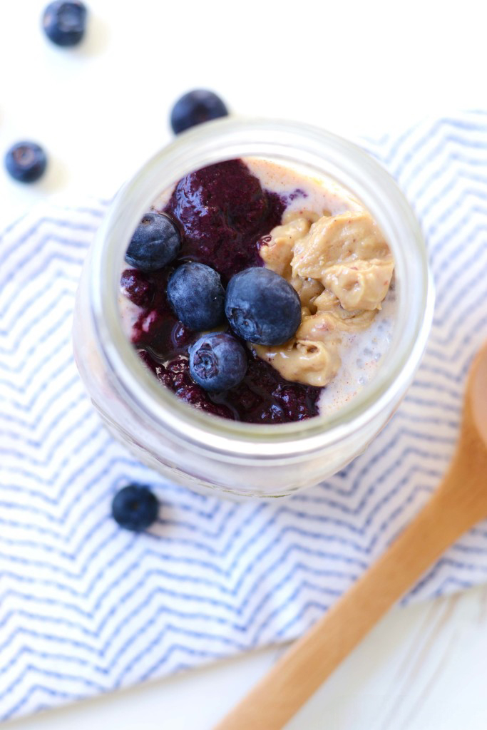 One of my favorite creations has been a classic flavor combo that’s spanned the ages: the PB & J. The combination of chunky, natural peanut butter and fresh chia jam is unstoppable. Ever since I discovered chia jam last summer I barely ever get store-bought anymore. Plus, like these oats, the jam is totally customizable, too. You can use whatever fruit you’re craving or have in your fridge to make it.