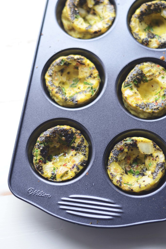 Pesto and onion add a flavorful punch making these egg muffins the perfect recipe for a week of breakfasts or protein packed snacks.