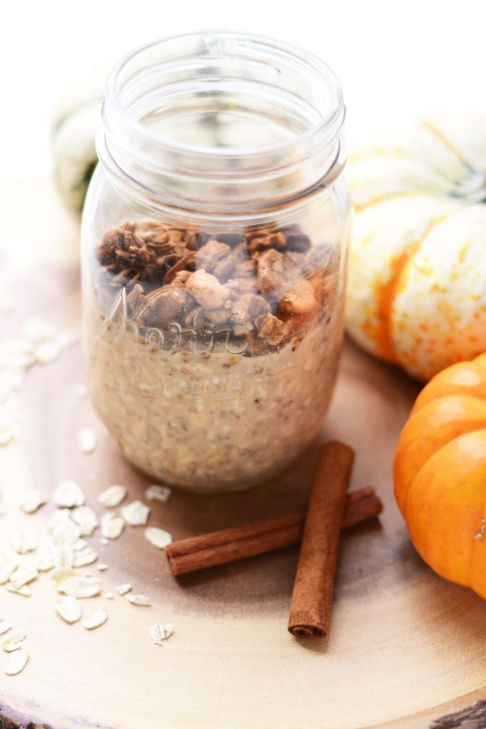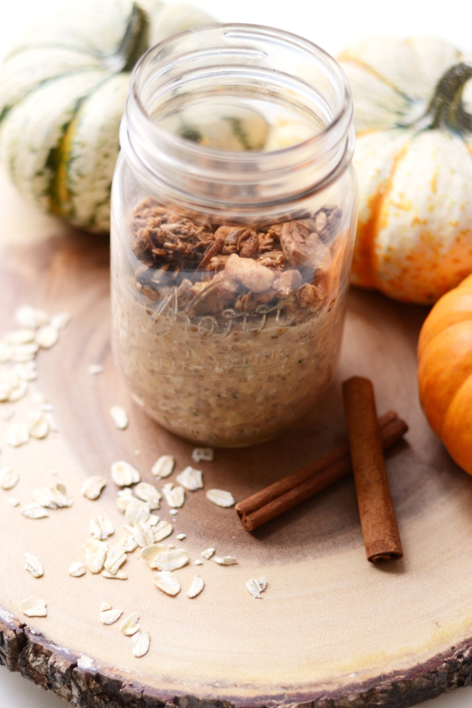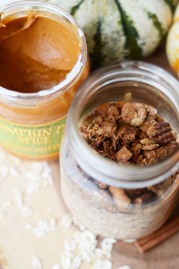 My latest obsession: Pumpkin Pie Cookie Butter Overnight Oats. It’s kind of a mouthful but in the most pumpkin-y perfect way. If you’re not familiar, overnight oats is an easy and portable way to prepare oats the night before. Pumpki-fying (which is totally a thing) them? You’ll feel like you literally ate the month of October. Ok, I don’t know if that’s a good thing or not, but in this case, let’s all agree that it is.