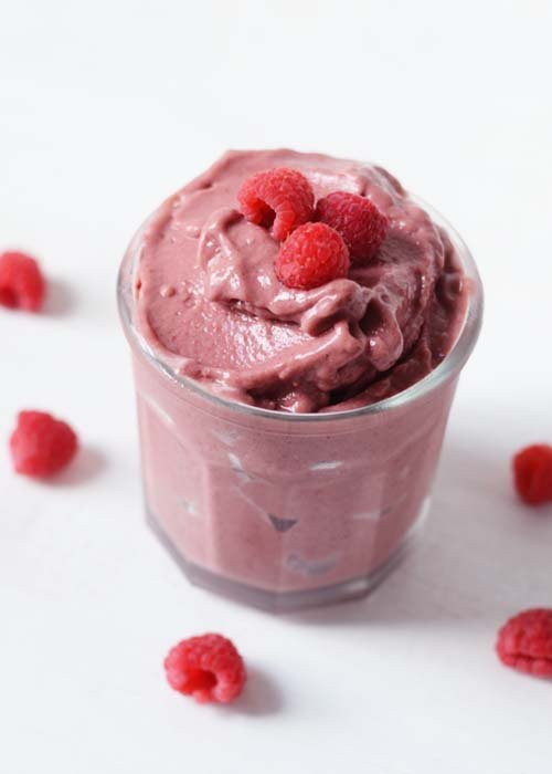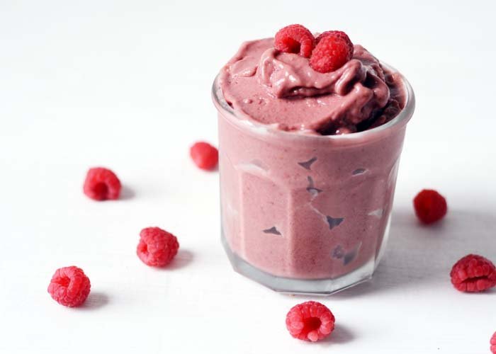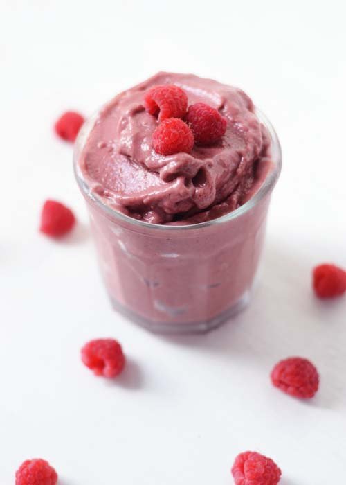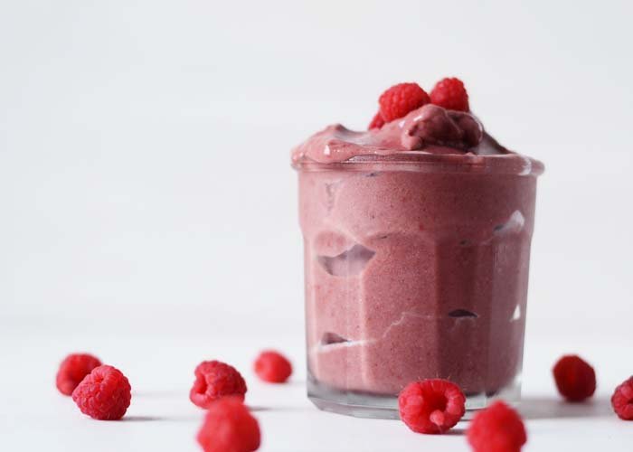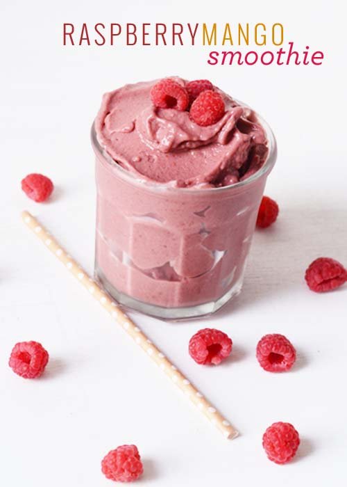 Tart juicy raspberries and sweet mango blend together smoother than a Jay Z and Beyonce song in this fruity smoothie.
