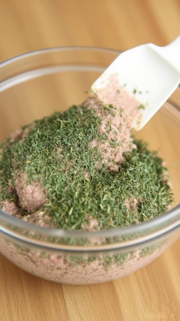 - Using a strong spatula or your hands (I prefer wearing latex gloves), mix the ingredients well and shape the mixture into 1-inch balls, making about 48 in total.